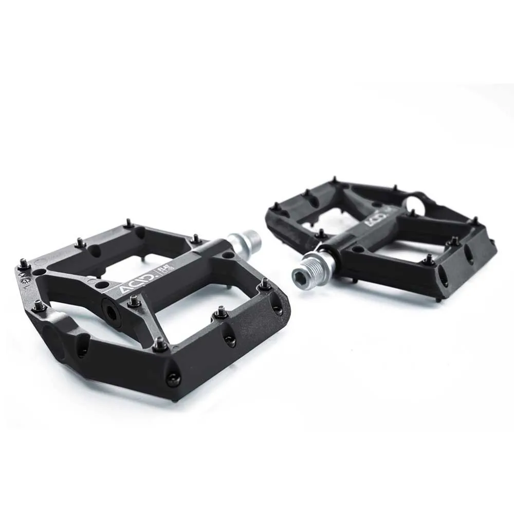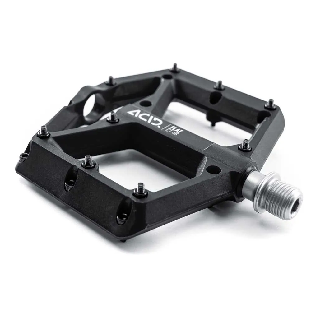 Conozco cada berma, salto, roca y raíz de árbol de este parque de bicicletas. ¡Es una descarga de adrenalina masiva! Y puedo contar con mis pedales ACID FLAT al 100%. Con sus pasadores ajustables y su plataforma grande, me siento pegado a la bicicleta incluso en las secciones de raíz más retorcidas, pero aún puedo tocar en un instante si las cosas comienzan a aflojarse demasiado.