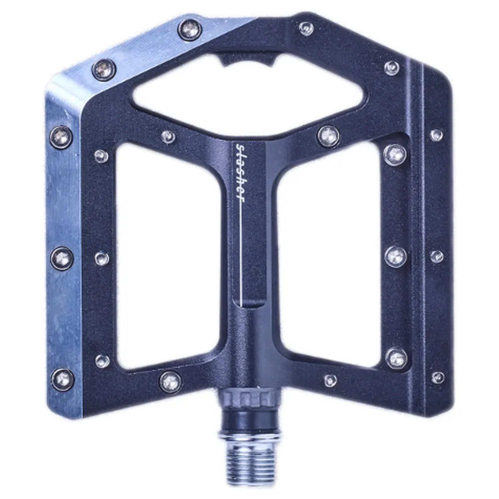 Conozco cada berma, salto, roca y raíz de árbol de este parque de bicicletas. ¡Es una descarga masiva de adrenalina! Y puedo contar con mis pedales Slasher al 100%. Con sus pasadores ajustables y su gran plataforma, me siento pegado a la bicicleta incluso en las secciones de raíz más retorcidas, pero aún puedo tocar en un instante si las cosas comienzan a aflojarse un poco.