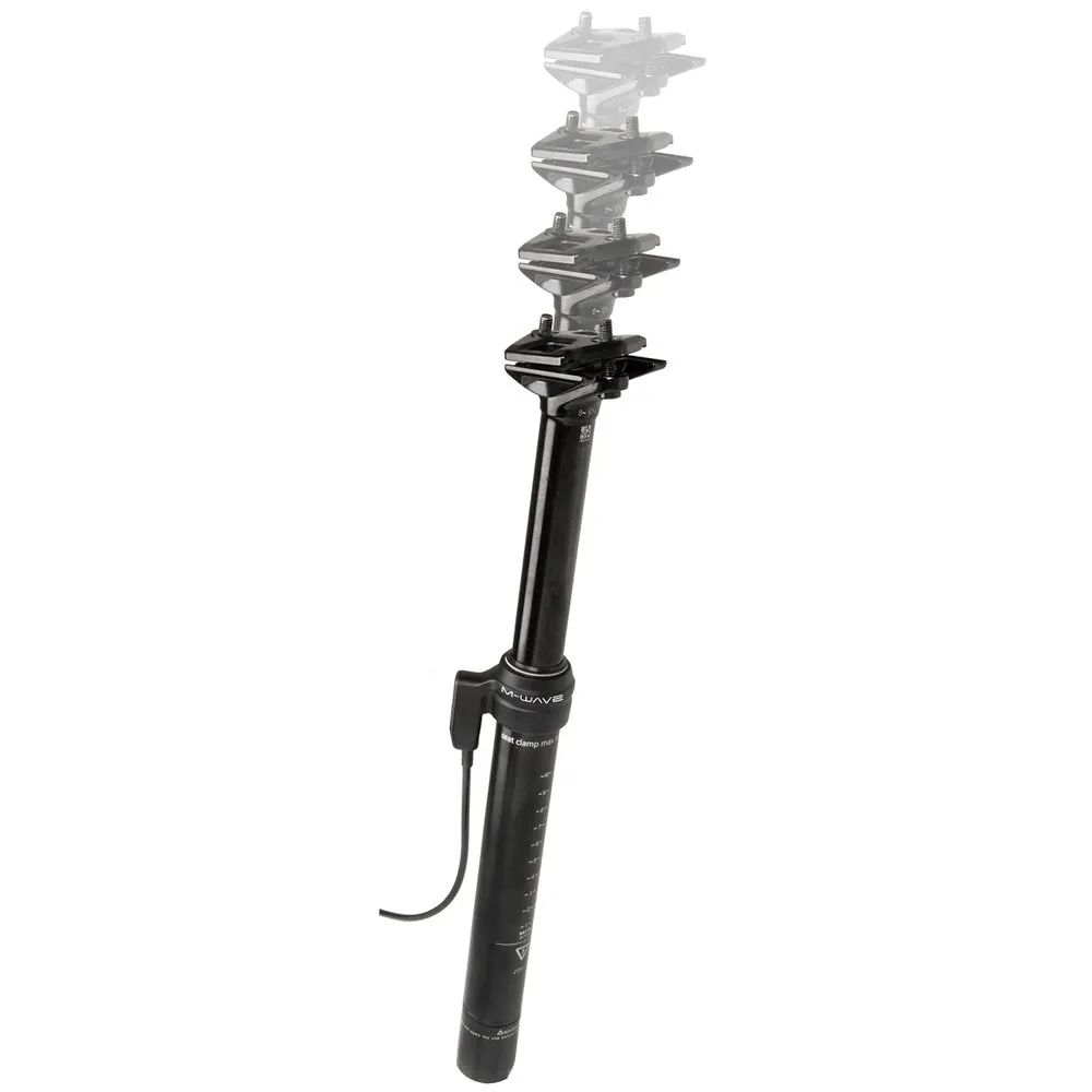 Tija de sillín neumática infinitamente variable M WAVE, 27.2 x 390 mm, con control remoto, rango de ajuste 105 mm, negro, caja