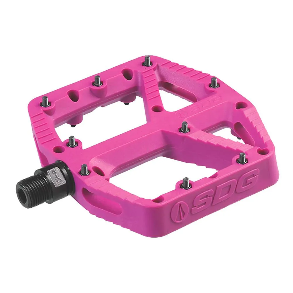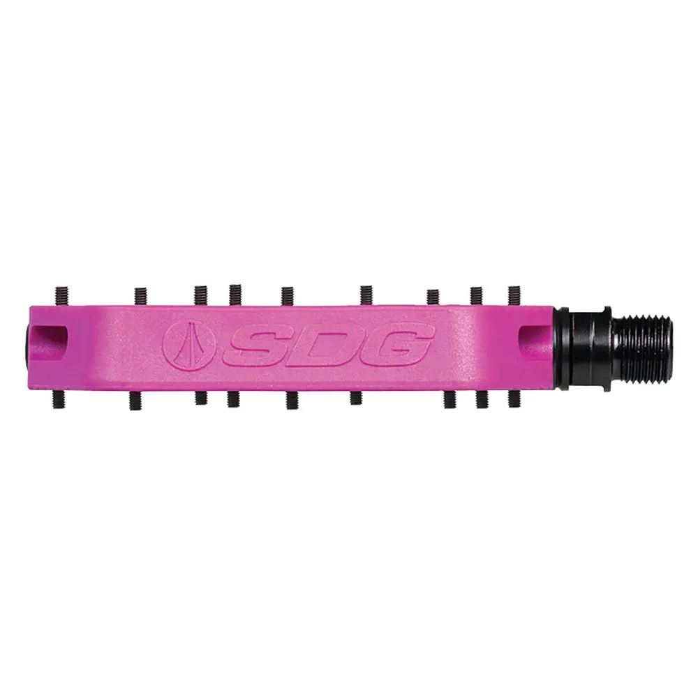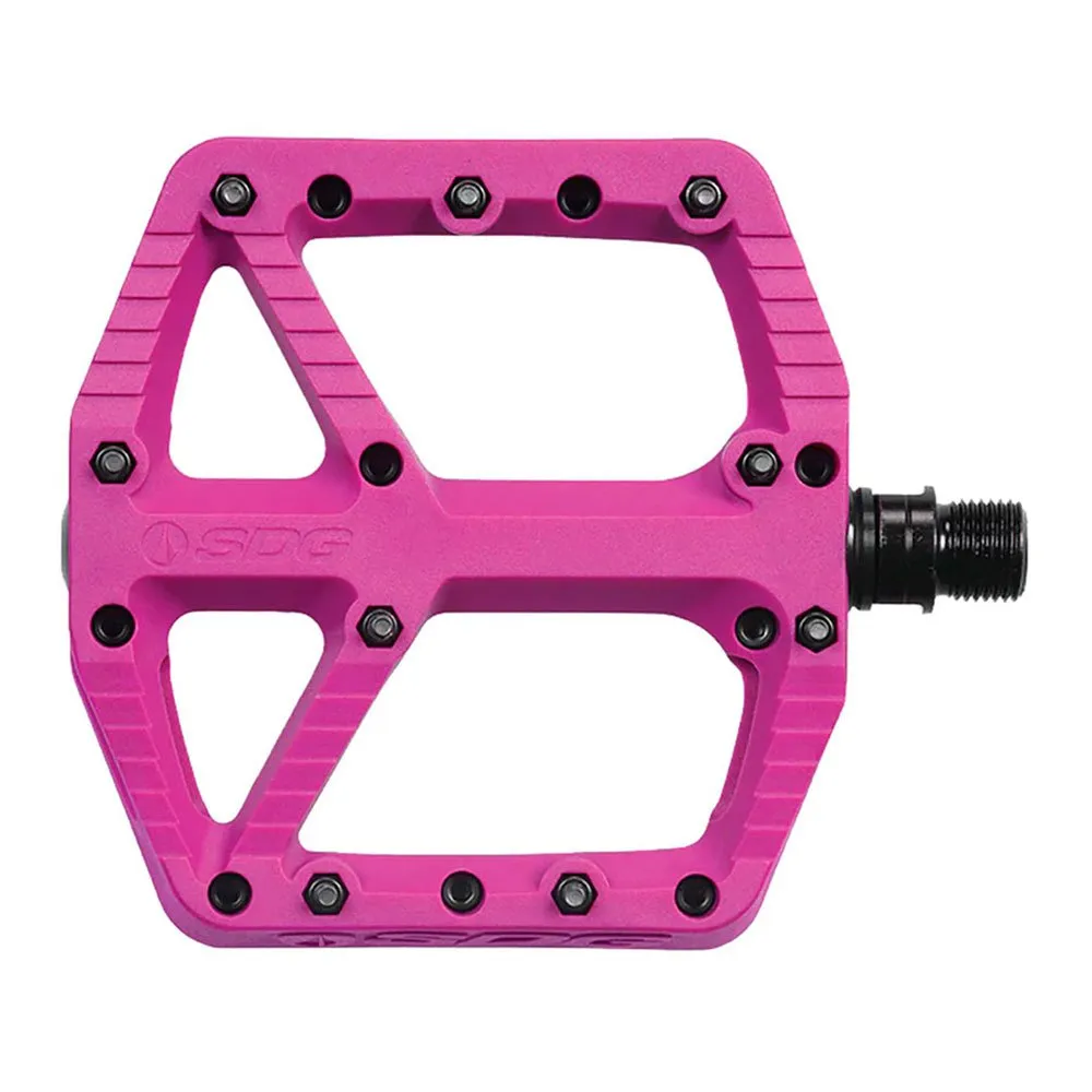 Los pedales Sdg Comp impresionan con una gran plataforma de pedales con un tamaño de 110 mm x 105 mm. Para garantizar el máximo agarre, los pedales tienen 18 pines. Los nuevos pedales Comp pivotan sobre un eje de cromo maquinado con un sistema de rodamientos y bujes reequipable y están construidos lo suficientemente resistentes como para recibir una paliza. Los zapatos de pedal plano tienen suelas rígidas que se adaptan de manera óptima a los perfiles de los pedales planos. Por lo tanto, los pedales Sdg Comp tienen una forma de perfil plano con superficies de contacto biseladas y recortadas. Esto asegura la mejor conexión entre el pedal y el zapato y proporciona la máxima comodidad.