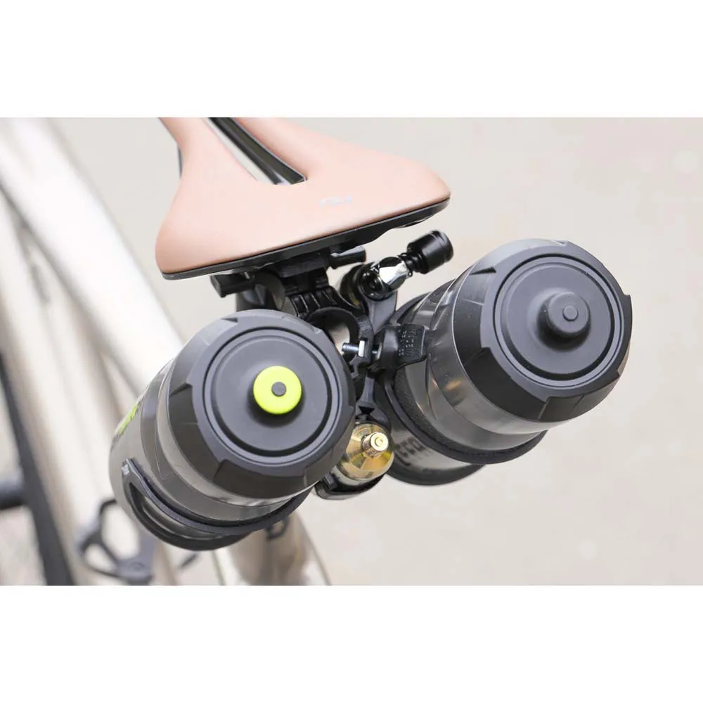 Diseñado para los triatletas más exigentes, este sistema de hidratación trasera te permite poner dos botellas debajo del sillín o una botella y una guantera.